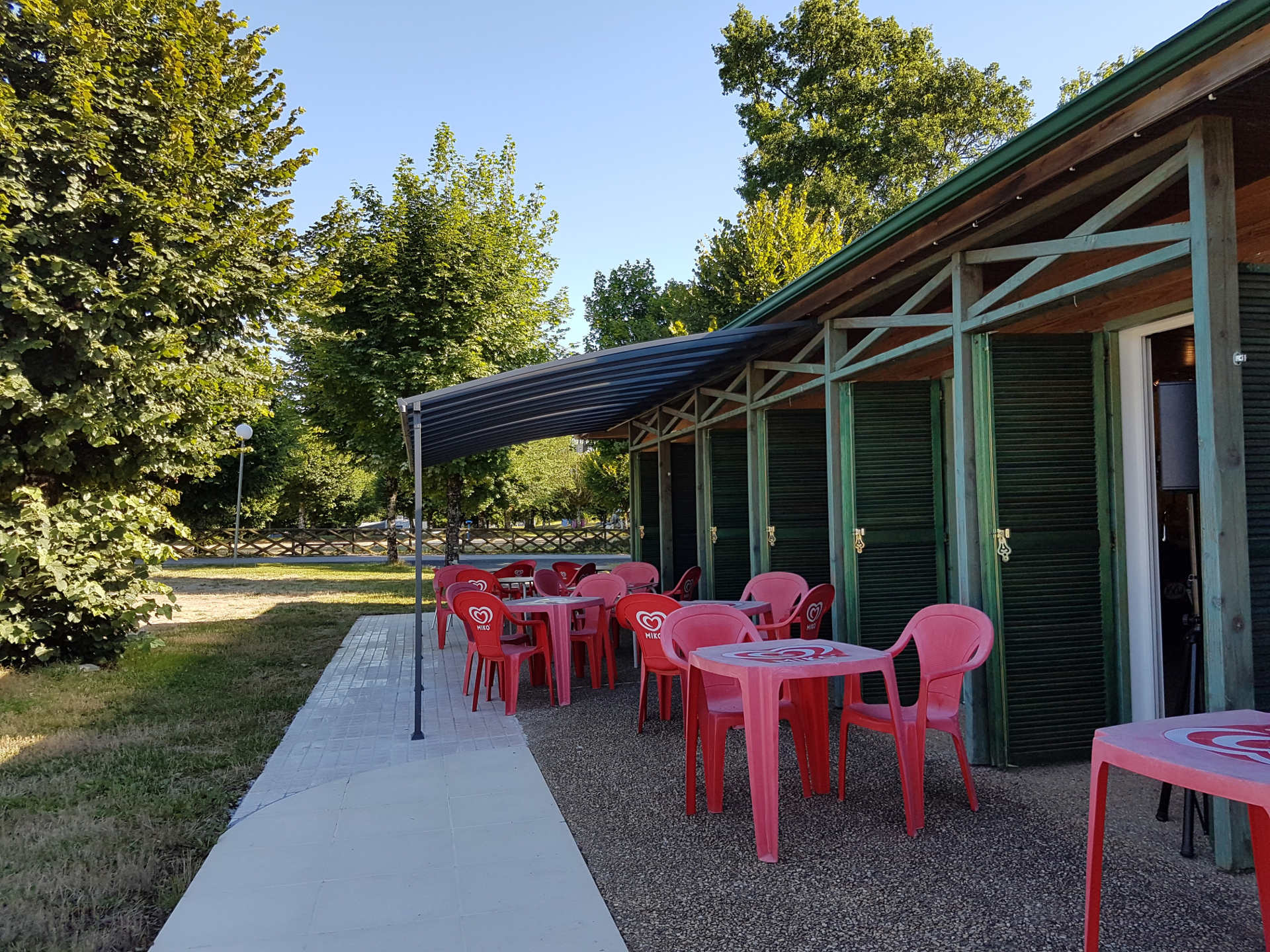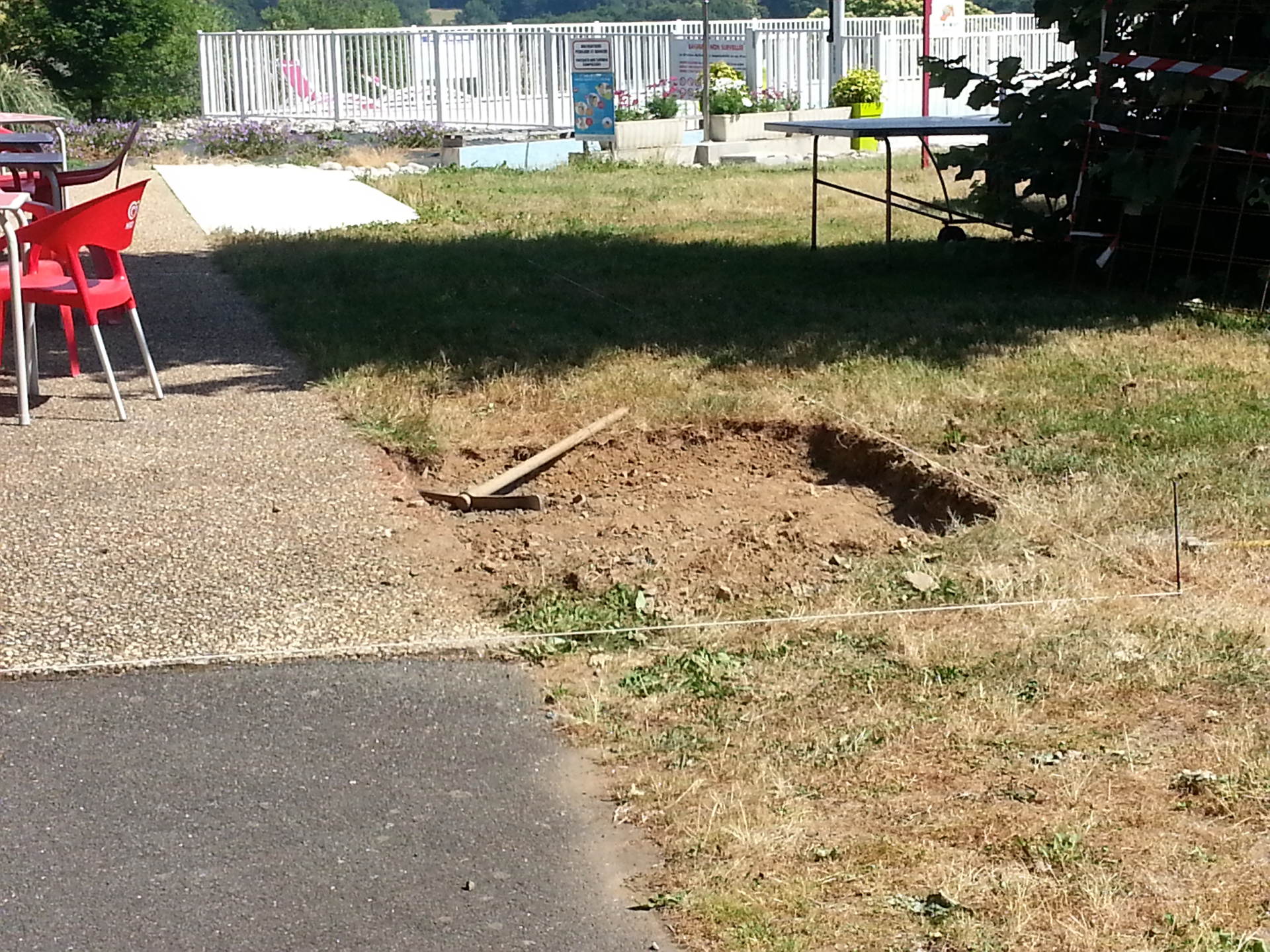 Cette année, nous avons décidé d’agrandir et de couvrir une partie de la terrasse de la cantine à Thierry…pour se protéger des UV bien-sûr…aussi de la pluie mais il n’y en aura pas!